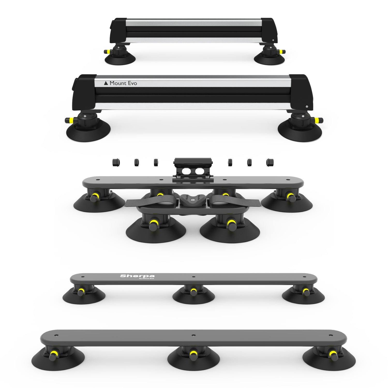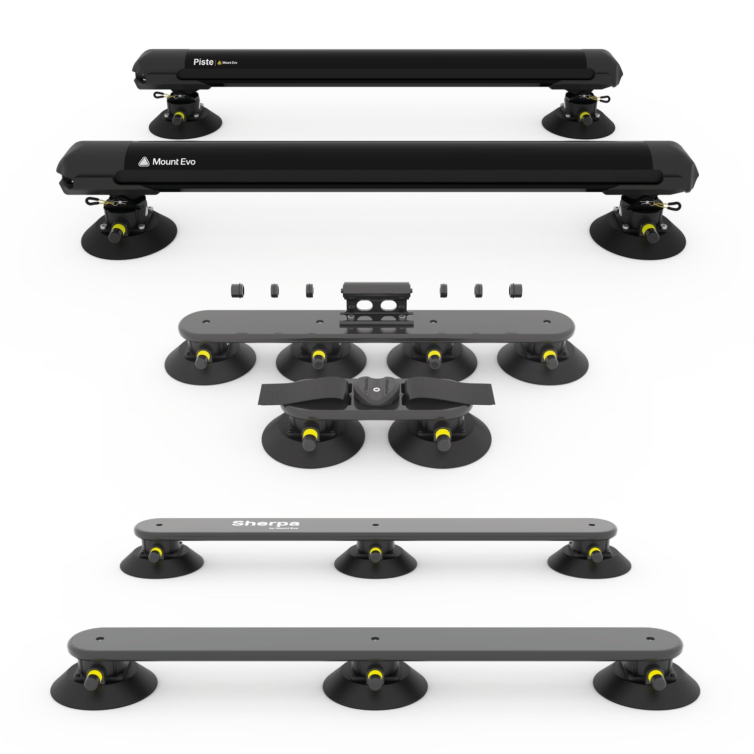 Bündeln Sie Ihre Sportgepäckträger und sparen Sie Geld. Unsere Pakete umfassen Vakuumnäpfe und zwei modulare Basen. Eine für jeden Gepäckträger im Paket. Dies ist die kostengünstigste Methode, Ihre Lieblingssportgeräte auf jedem Auto zu transportieren.