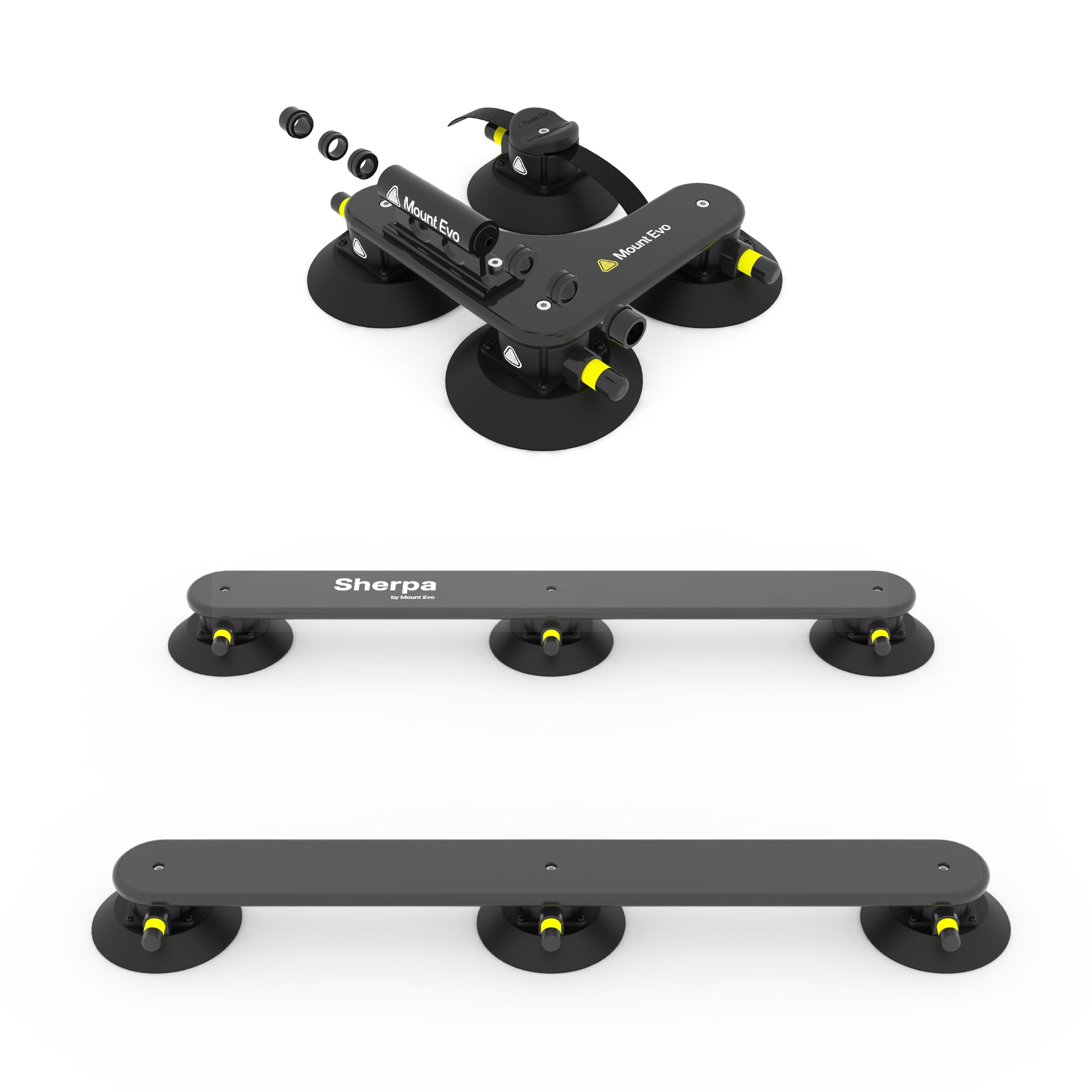L'ensemble Solo + Sherpa combine le porte-vélos innovant Solo et le porte-bagages Sherpa Carryall , idéal pour les passionnés de plein air, de vélo comme de sports nautiques. Cet ensemble polyvalent comprend six ventouses de qualité industrielle assurant une fixation solide et sécurisée aux deux supports, ainsi que deux bases modulaires : une pour Solo et une pour Sherpa.