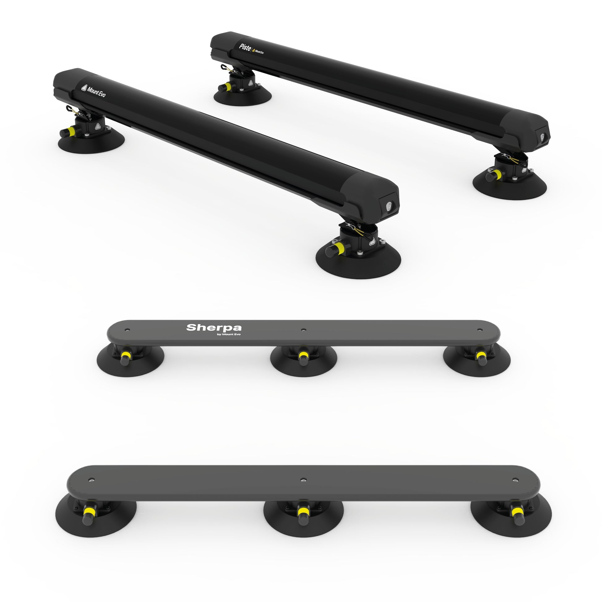 Le pack Piste + Sherpa est la solution de transport idéale pour les amateurs de plein air, adeptes des sports d'hiver et des sports nautiques. Polyvalent, il comprend le porte-skis et snowboards Piste , conçu pour transporter vos skis et snowboards en toute sécurité dans n'importe quelle voiture, et le porte-bagages Sherpa Carryall , qui permet de fixer facilement votre équipement jusqu'à 30 kg. Grâce à leurs ventouses de qualité industrielle, les deux supports offrent une flexibilité totale, sans barres de toit fixes ni kits de fixation. Idéal pour ceux qui alternent entre pistes enneigées et vagues. Ce pack comprend des bases modulaires pour Piste et Sherpa, ainsi que 6 ventouses.