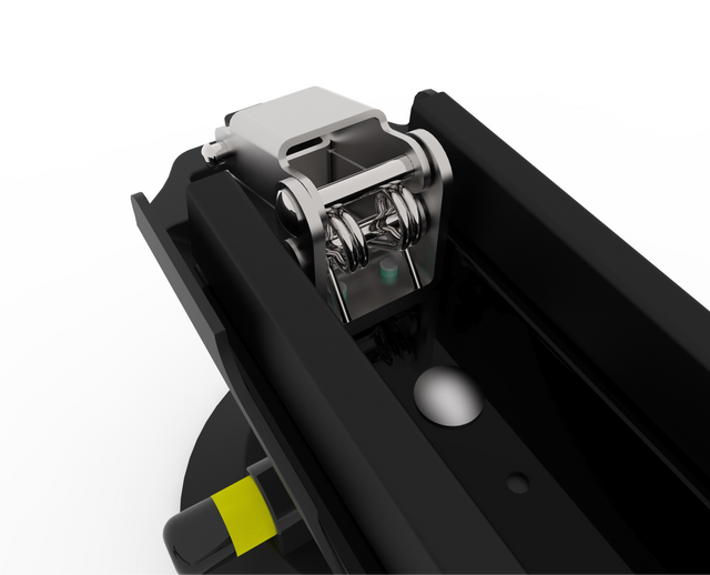 Le système Piste se commande par un simple bouton avec verrouillage intégré. Une simple pression permet de déverrouiller le bras supérieur et de libérer votre équipement ; pour verrouiller, il suffit de tourner la clé.