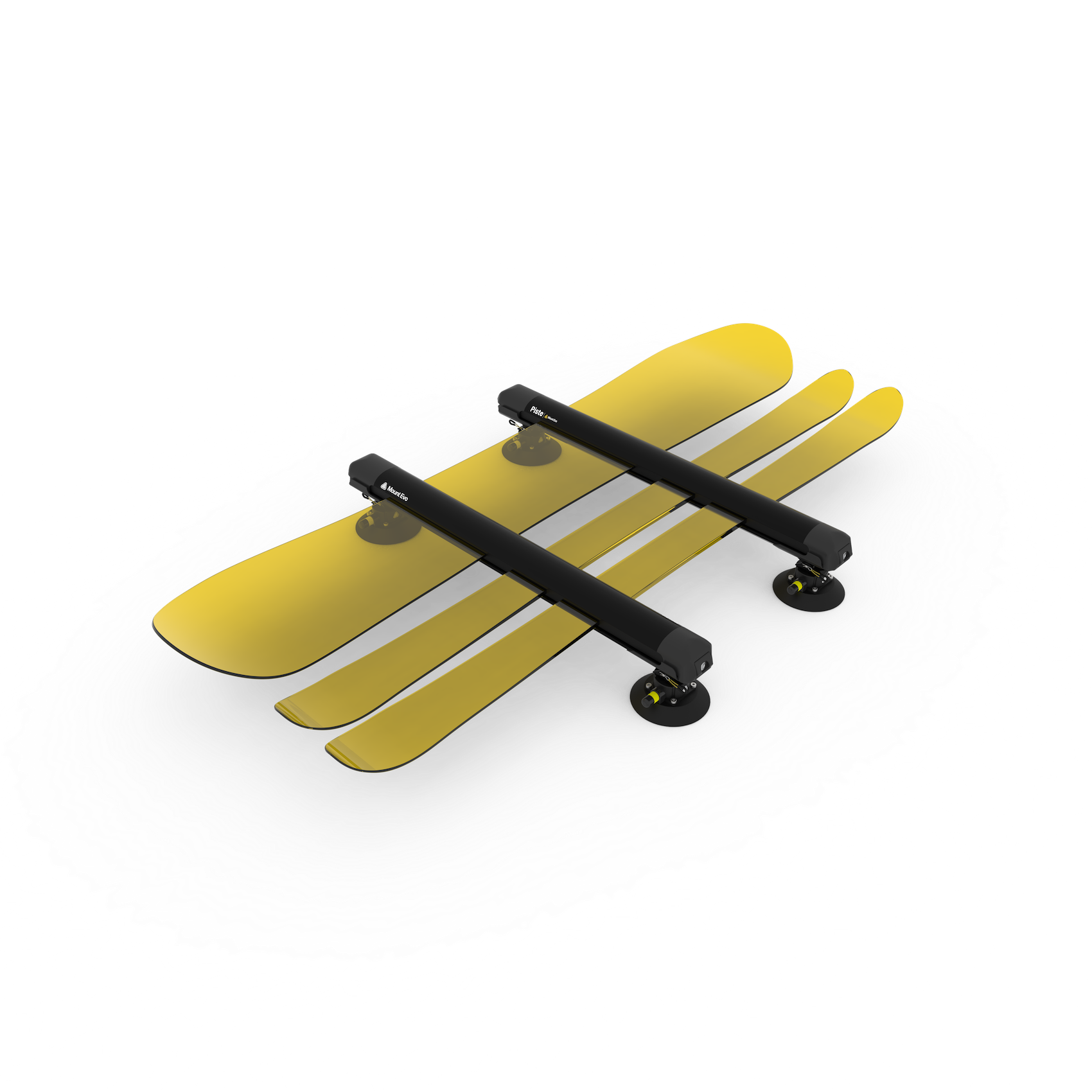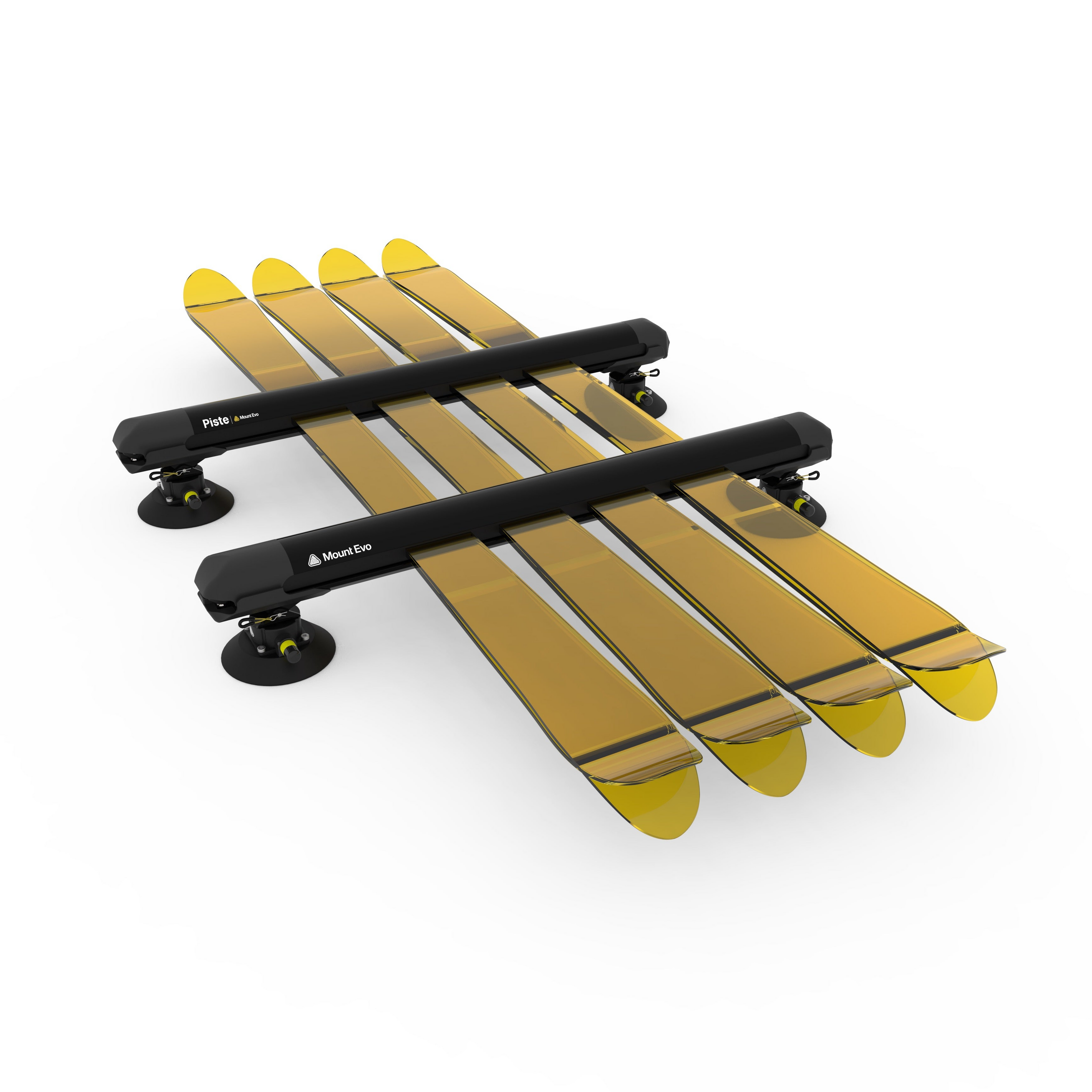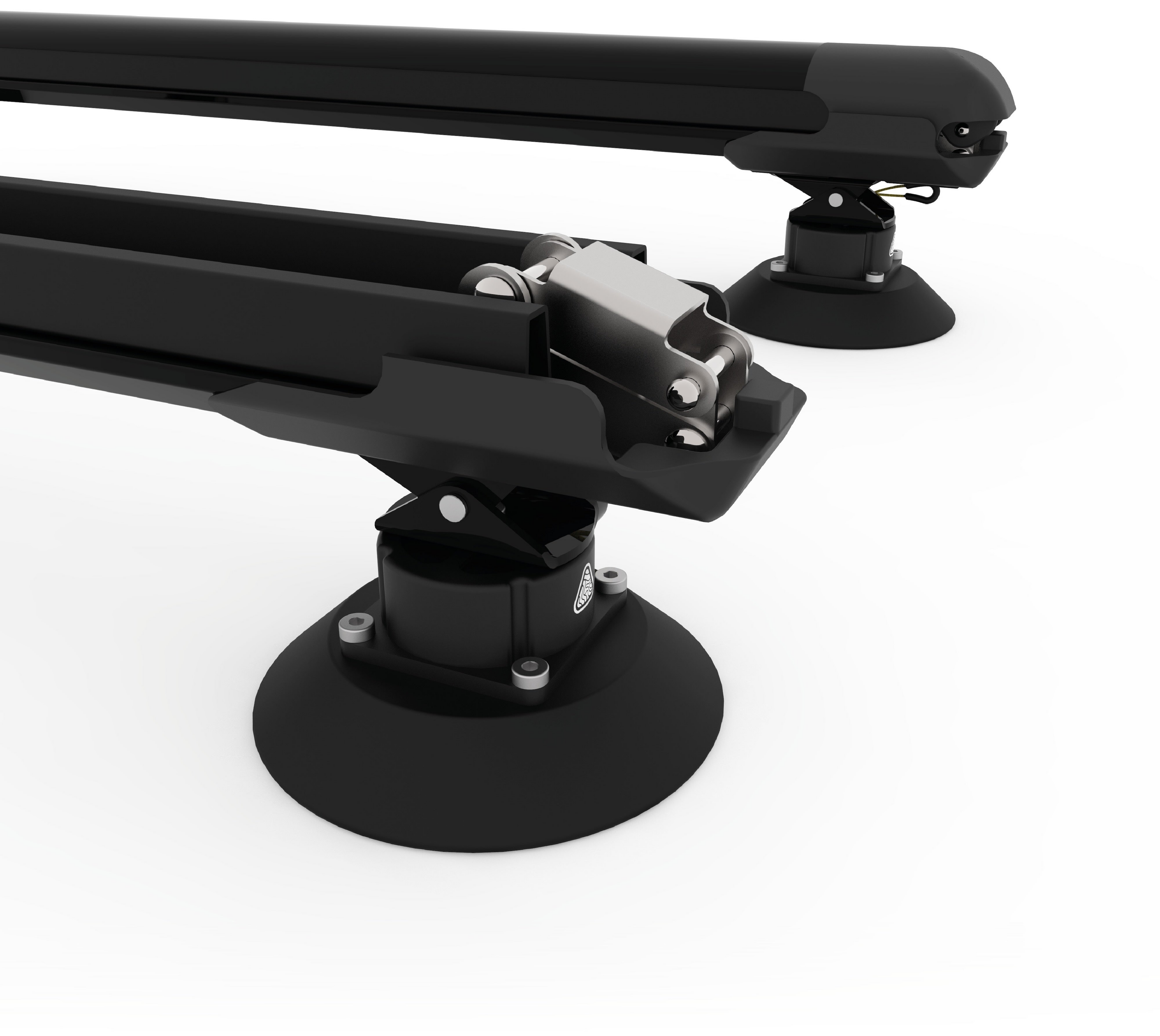 Nos ventouses modulaires se fixent sur toute surface lisse. Vous pouvez ainsi installer le Piste n'importe où sur le toit de votre voiture, y compris sur le pare-brise panoramique.
