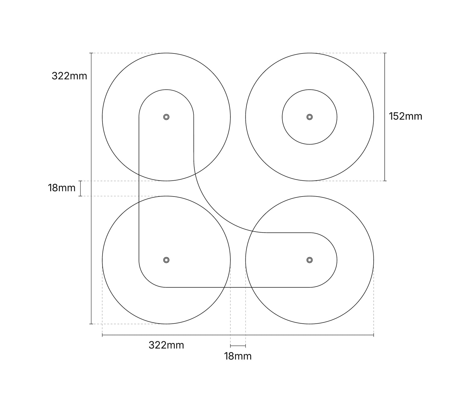 - Dimensions - L 322 mm x L 322 mm x H 124 mm