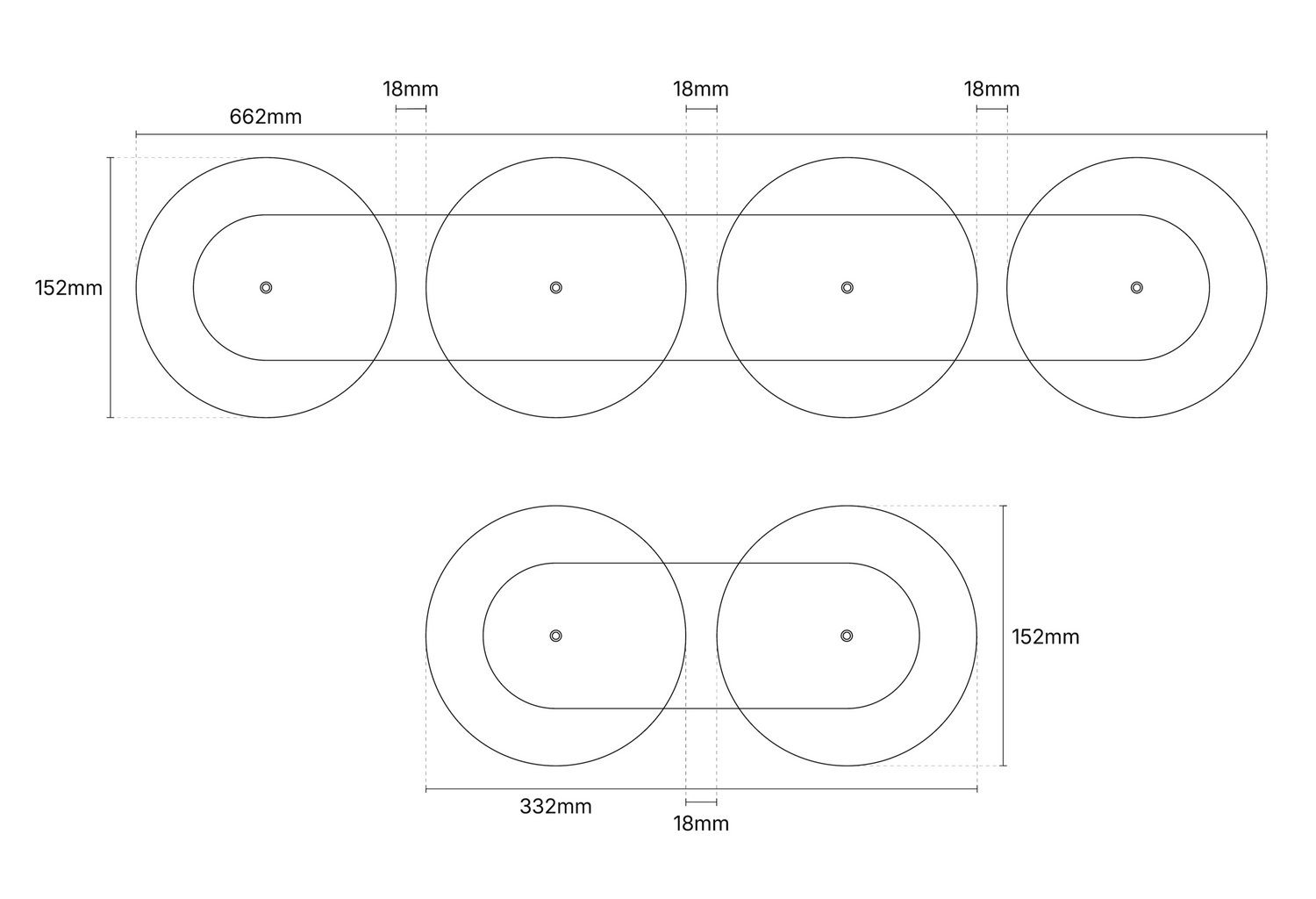 - Dimensions - Base principale - L152 mm x L662 mm x H127 mm.