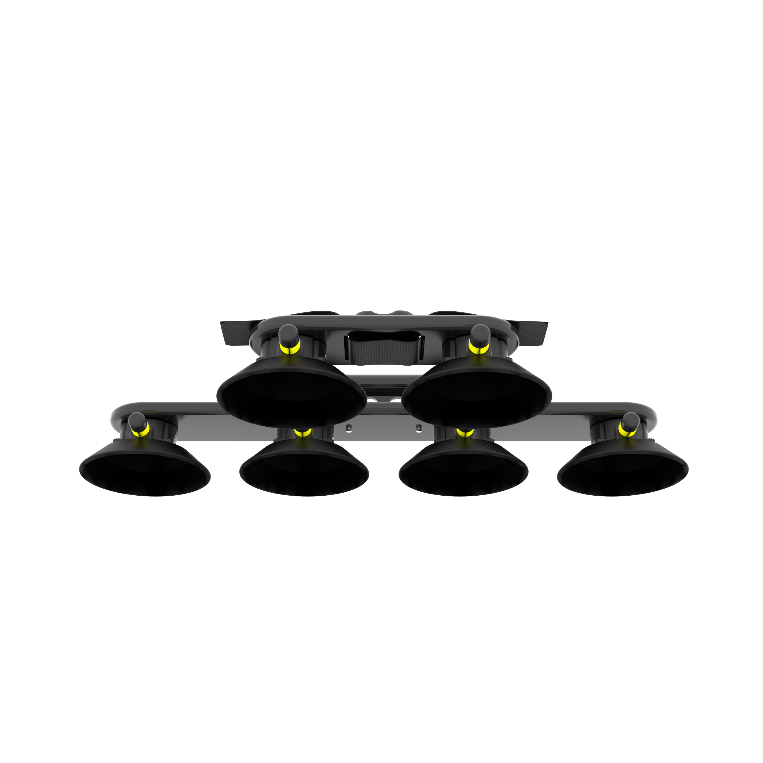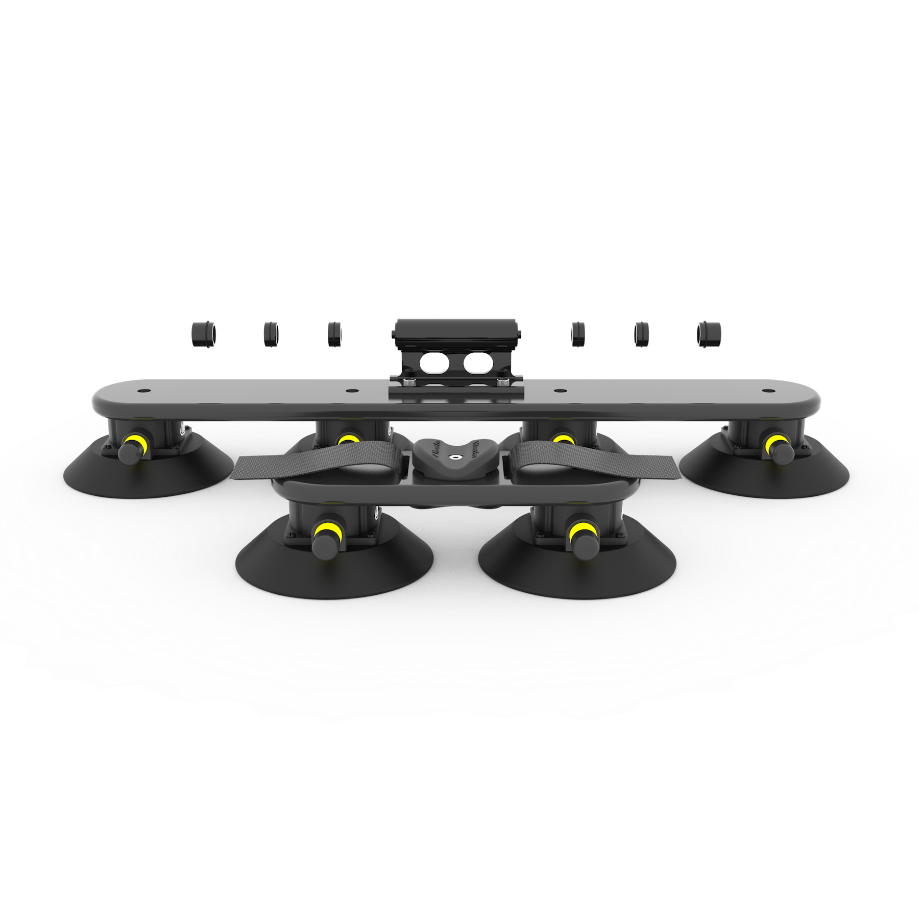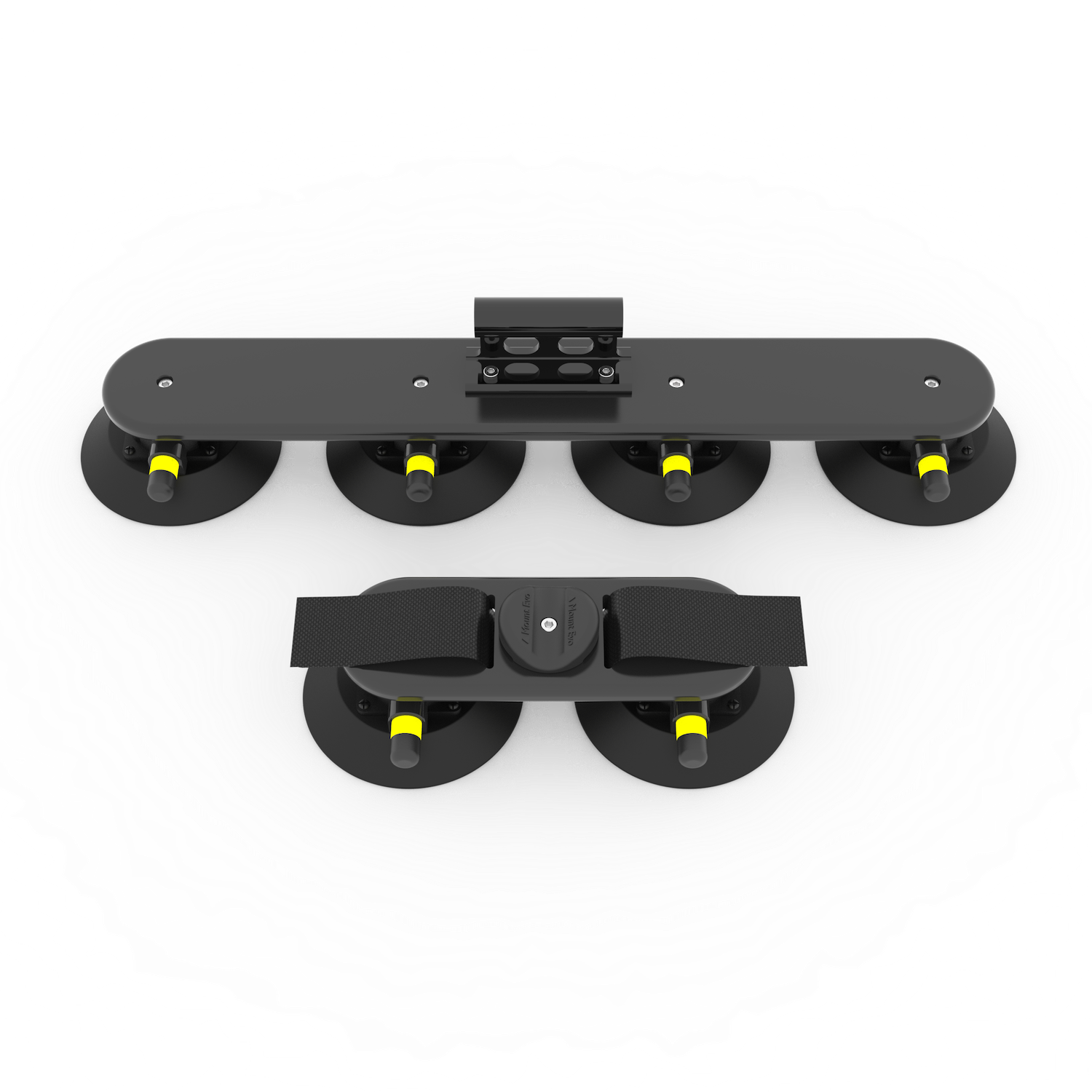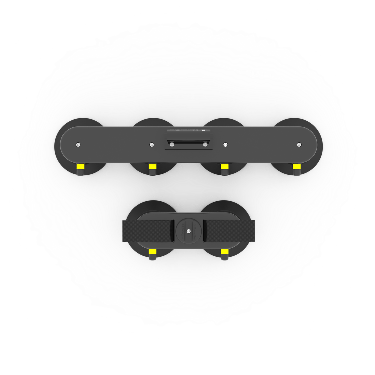 Grâce à la force des ventouses de qualité industrielle, E-Solo exerce une force de maintien de plus de 600 kg. Assez pour suspendre facilement un membre de l'équipe Mount Evo à l'envers.