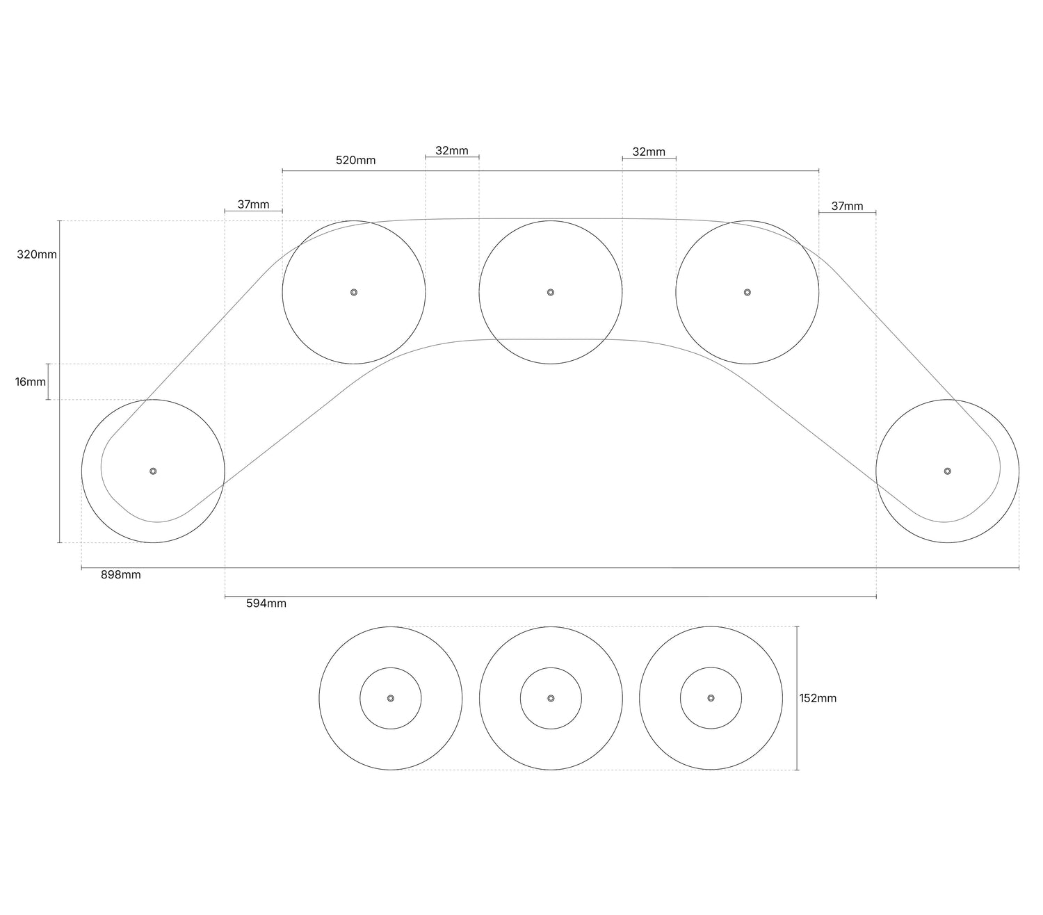 • Dimensions - Base principale - L898mm x P320mm x H142mm.